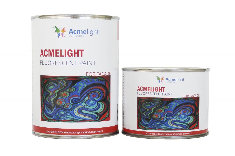 Флуоресцентная эмаль на акриловой основе. Используется для реализации дизайнерских решений внутри помещения. В нее добавляются пигментные частицы, которые светятся при попадании солнечных лучей. Они имеют разные цвета. Можно достичь любого другого оттенка, самостоятельно смешивая колера. Акриловыми пигментами очень хорошо окрашивать такие материалы, как гипсокартон, дерево, штукатурку. Покраска металла или пластика не рекомендуется.
