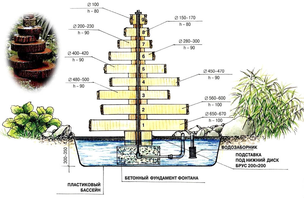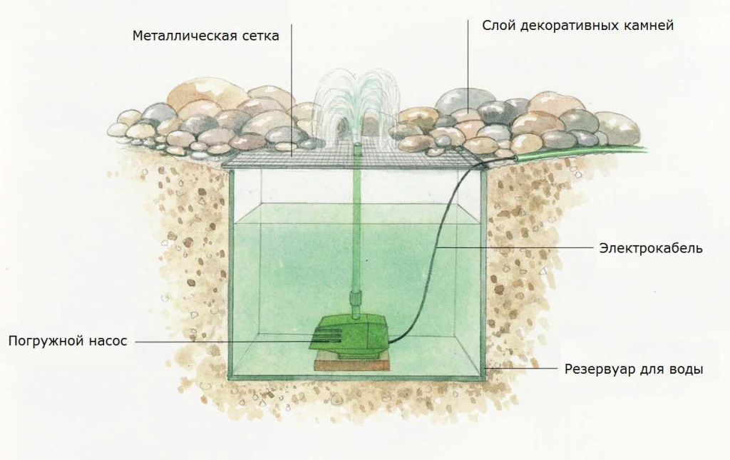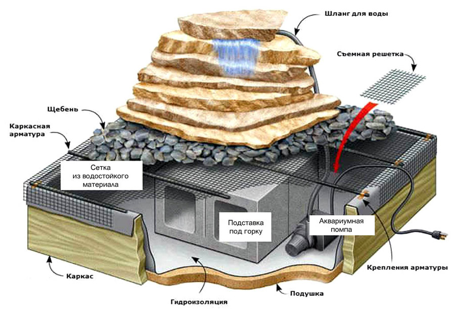 Итак, для устройства водного шедевра без насоса соблюдаем такие этапы работы: