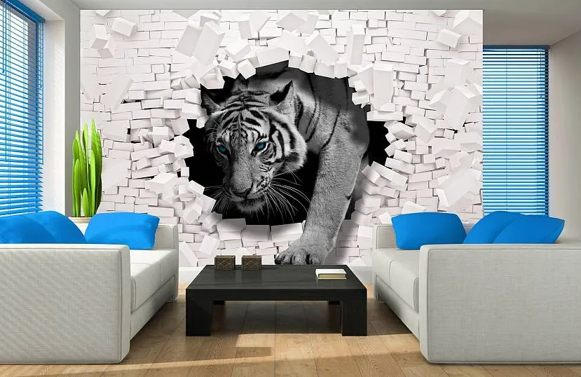 Дизайнеры не рекомендуют использовать в жилых помещениях шпалеры с эффектом наблюдения. Интерьер гостиной с 3D фотообоями, на которых изображены злые лица людей или нападающие животные, вызывает негативные эмоции у обитателей. Оформление должно быть не только стильным, но и комфортным.