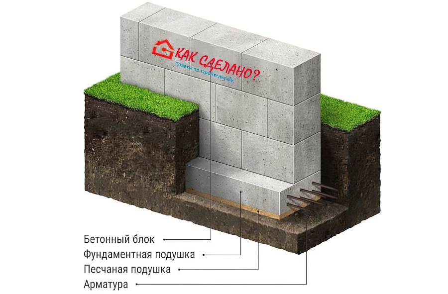 Устройство блочного фундамента, конструктивная схема основания