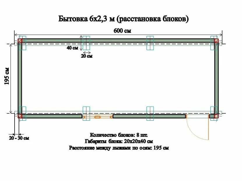 Для возведения временного сооружения подойдут блоки ФБС 4-2-2 размером 20х20х40 и весом около 40 кг. В целях экономии можно использовать бывшие в использовании блоки. Для укрепления опоры блоки под бытовку соединяют плиточным клеем.