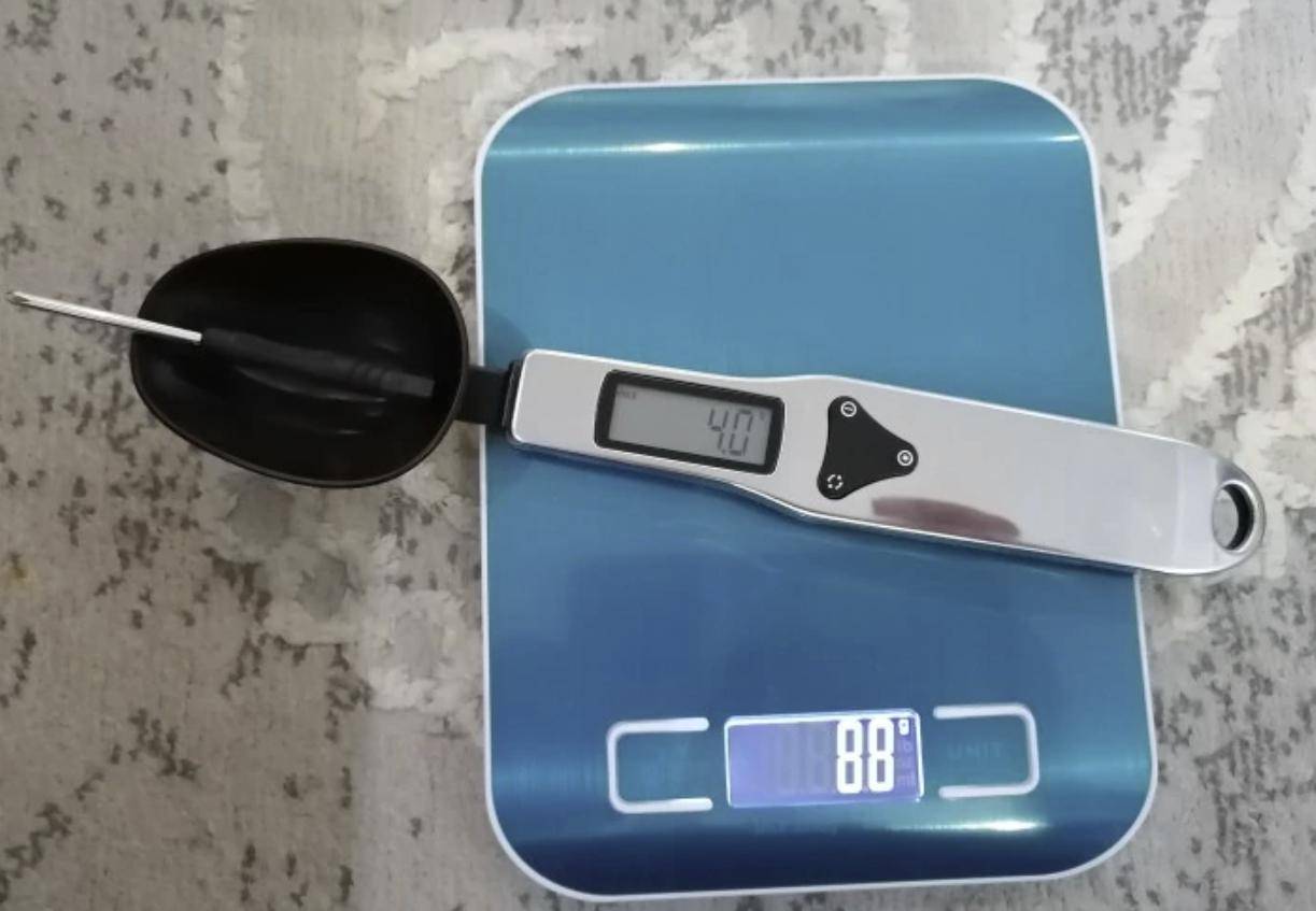 Мерная ложка со встроенными весами. Подойдет для тех, кто готовит маленькими порциями. Но и для всех остальных тоже будет полезна.