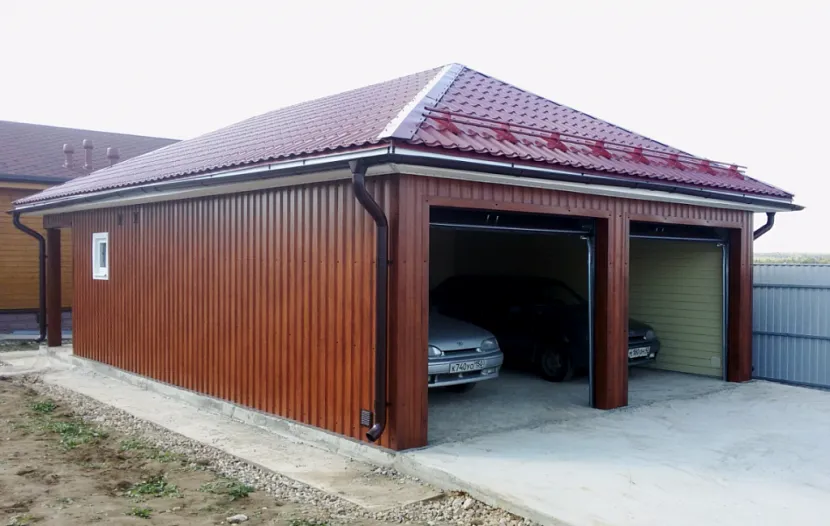 Во многих семьях, особенно живущих за городом, имеется в обиходе два автомобиля. В этой ситуации вполне логично сооружать гараж по каркасной технологии на две единицы техники. Ниже рассмотрены несколько вариантов: