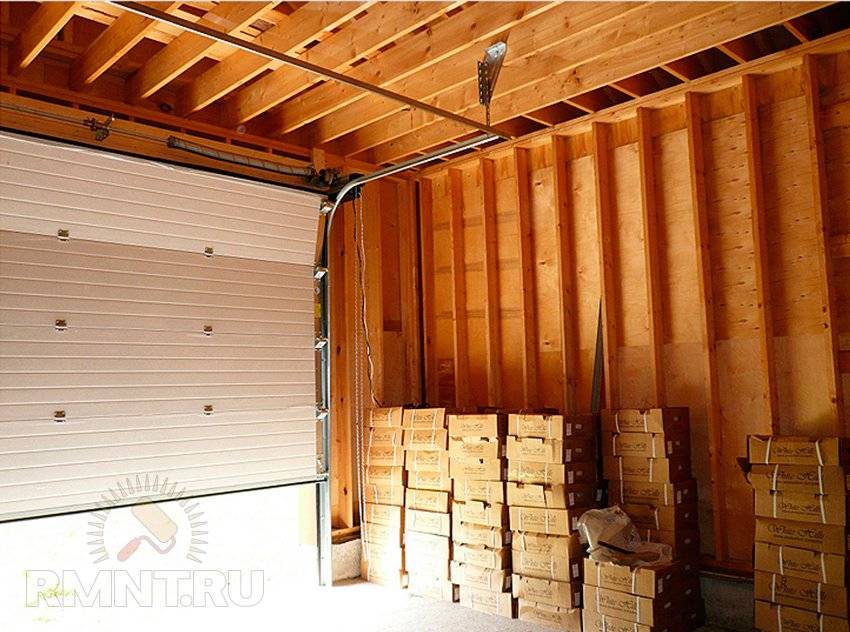 В середине стенки гаража есть возможность отделать гипсом, фанерой, ПВХ панелями. Для теплоизоляции применяется минвата, вспененный полимер.
