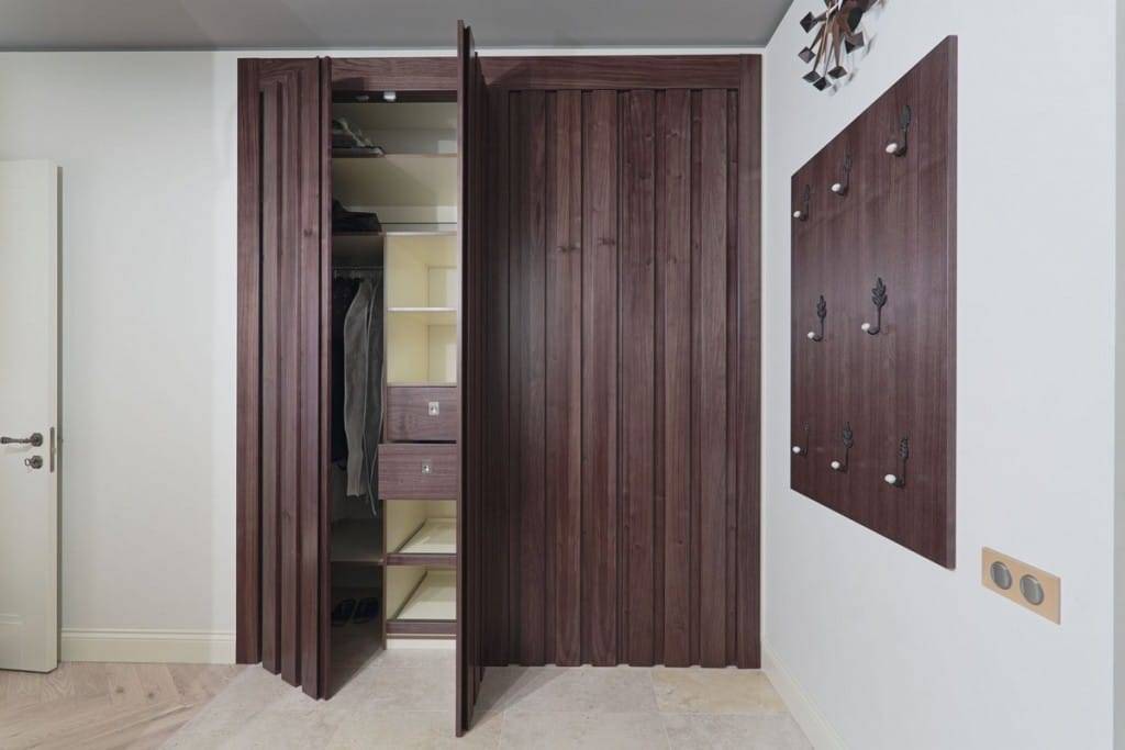 - создание небольшой гардеробной в прихожей — это является возможным только при наличии большого коридора, где имеется возможность выделить определенное пространство для хранения вещей.