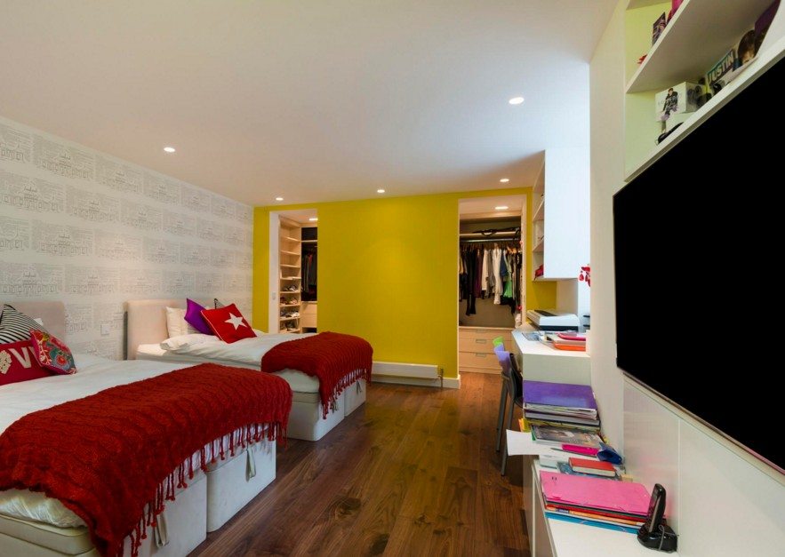Если детская комната достаточно просторная, можно выделить гардеробную. Они стараются расположить его таким образом, чтобы ребенку было удобно разобрать свои вещи и сложить их на свои места.
