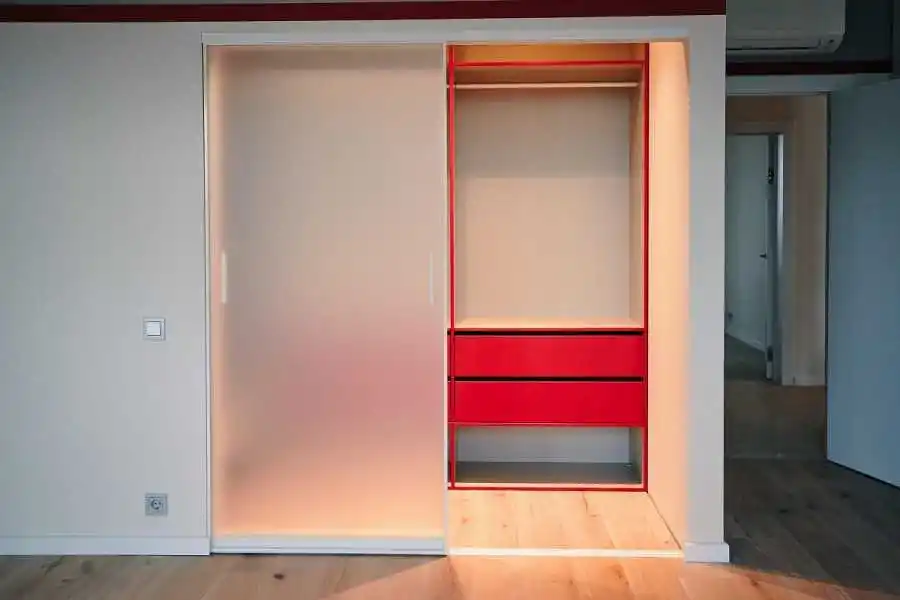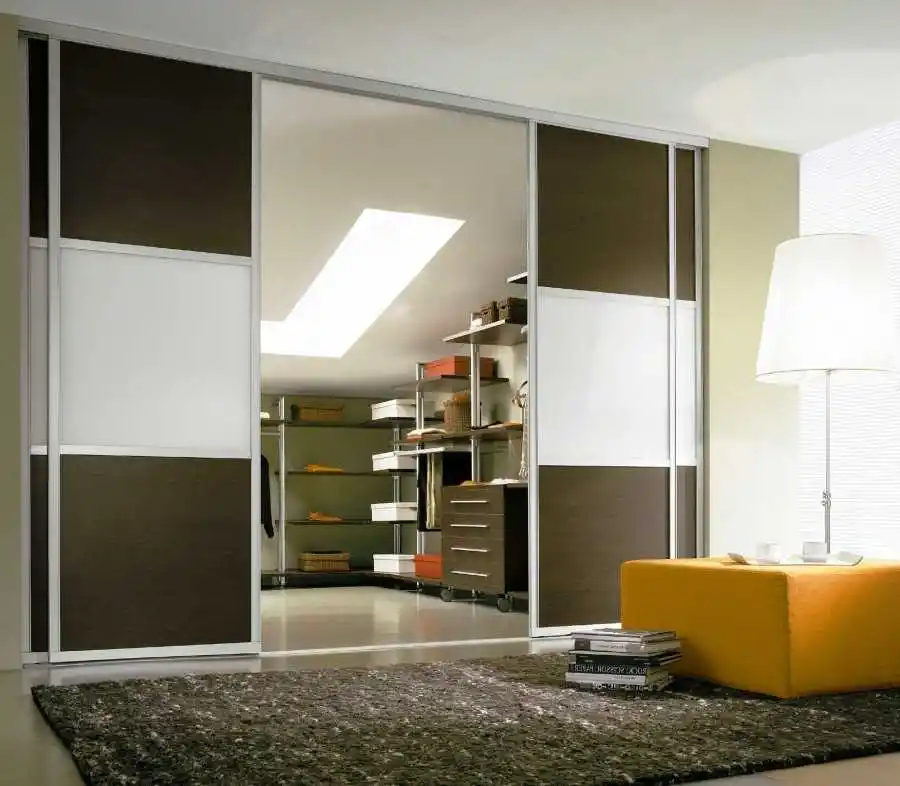 Далее стены декорируют на выбор мастера, а в последнюю очередь монтируют раздвижные двери.