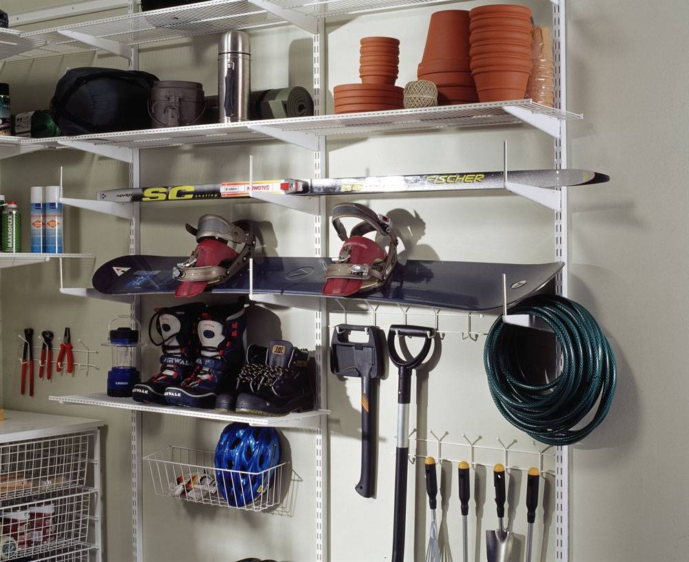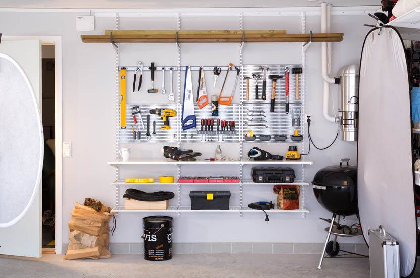 Где ж еще не место элементам Эльфа, как в гараже, где множество инструментов, садового инвентаря, запчастей. Аксессуары Elfa utility в компоновке с элементами Elfa classic позволяет элегантно организовать хранения всего этого многообразия.