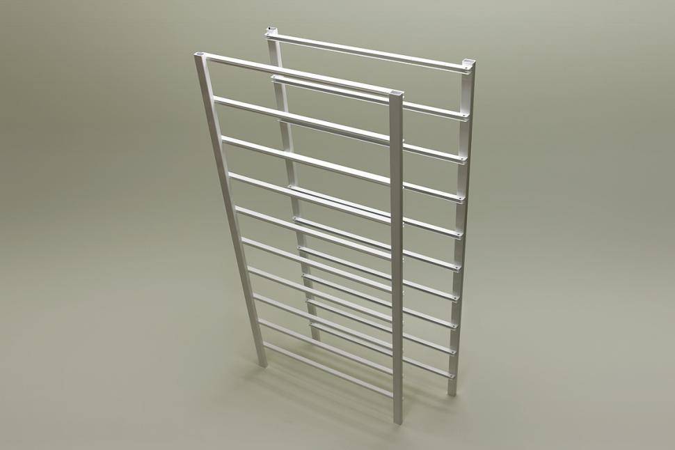Боковина стеллажа на 4 рельса выпускают высотой 44 см, на 7 рельсов высотой 74 см, на 10 рельсов высотой 104 см. Боковины выпускают стандартной глубины на 54 см и вариант мини глубиной 44 см.
