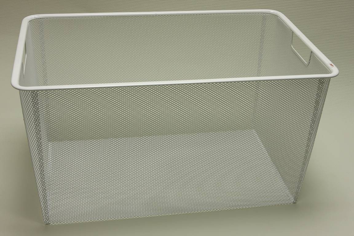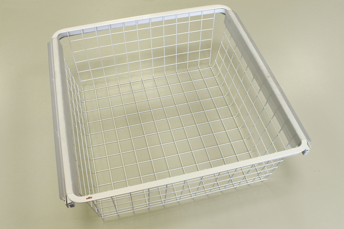 Сетка в такой корзине очень мелкая, что позволяет хранить мелкие предметы. Корзину ёще называют mesh корзина. Выпускают корзину Эльфа на 1,2, 3 рельса и шириной 35, 45, 55 см. Стоят мелкоячеистые корзины примерно в два раза больше чем обыкновенные корзины, два варианта по глубине на 54 см и 44 см в соответствии с глубиной стеллажа.