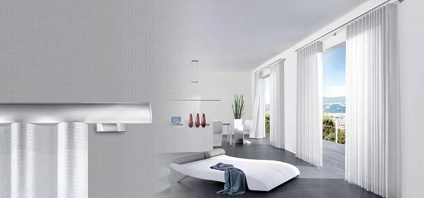 Дополнительная опция – управление. Модели с электроприводом более удобны при эксплуатации. Их используют при наличии большого количества окон, панорамных и стандартных окон. Такие карнизы управляются с помощью пульта ДУ, радио- или обычной кнопки. Они могут быть подключены к системе «Умный дом».