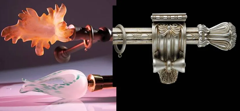 Те, кто предпочитает оригинальные нестандартные решения, могут выбрать изделия, созданные по инновационным технологиям с использованием новых методов обработки бронзы, дерева, латуни, стали, никеля, ковки железа. Карнизы инкрустируются цветными металлами, ценными породами дерева, венецианским стеклом, натуральным камнем, фарфором, хрусталем, украшаются перламутром, кожей и другими материалами.