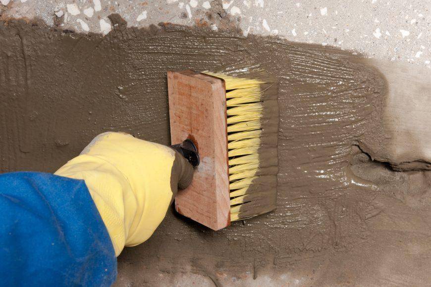 Также бетон изолируют от воды, пропитывая специальными вяжущими составами на органической основе. Нанесенный материал заполняет микротрещины основания, проникая в его глубь на 3-4 см.
