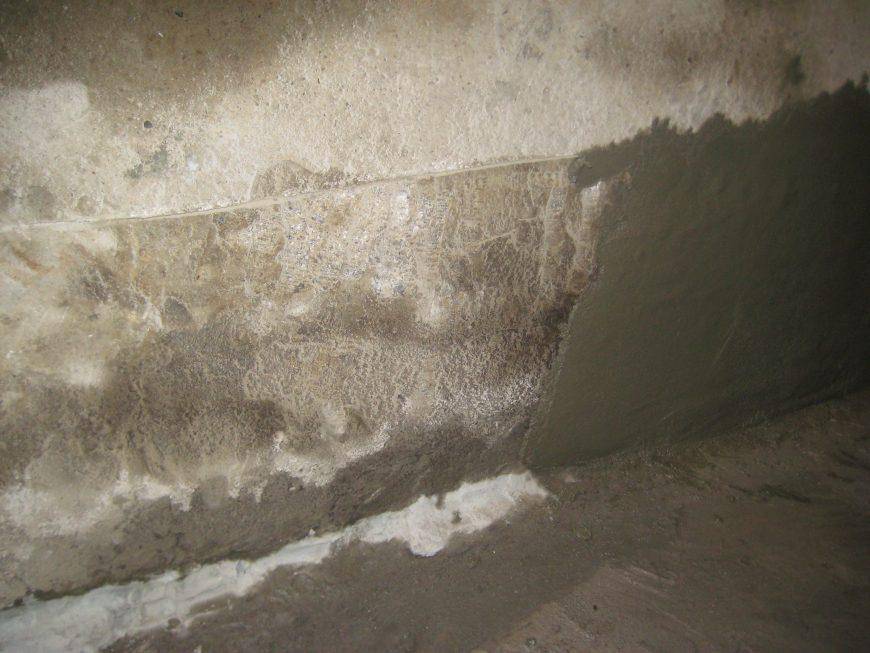 - фундамент просел или имеет признаки разрушения – в этом случае сначала проводятся необходимые ремонтно-восстановительные работы с последующей гидроизоляцией;