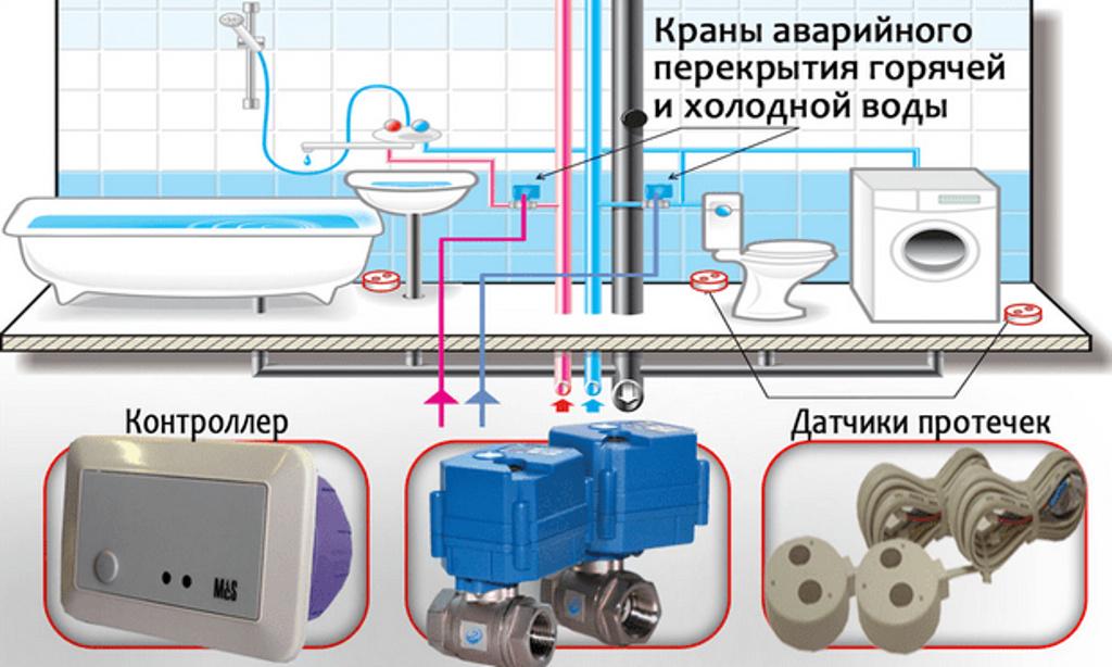 При срабатывании датчика, контроллер автоматически отключит воду в доме. В сочетании с гидроизоляцией, такая система гарантированно предотвратит затопление соседей снизу.