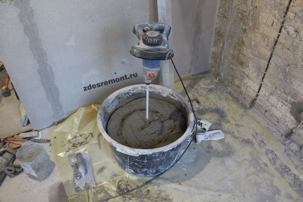 Замешивание штукатурки.