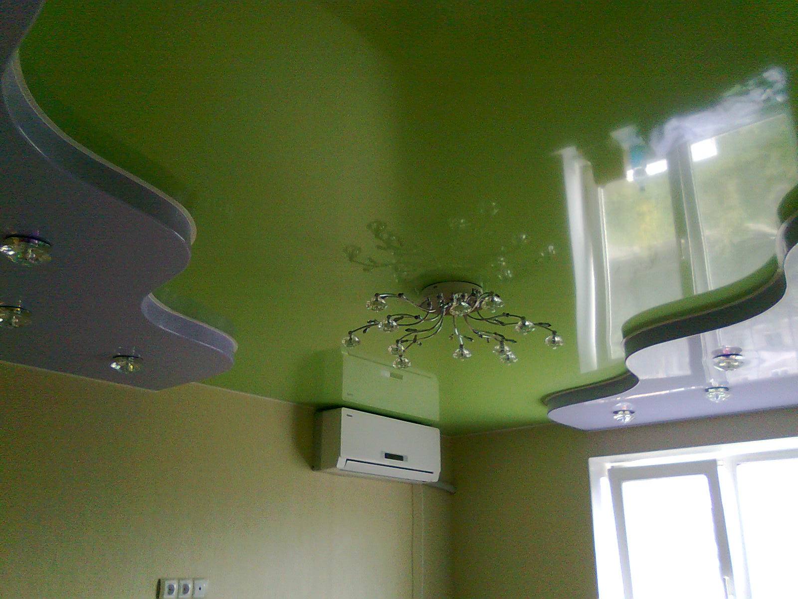 Глянцевые потолки. Это детальное решение для кухни, гостиной или ванной. Такие потолки визуально расширяют комнату. Плёнка имеет зеркальный вид, так как отражает до 80% света.