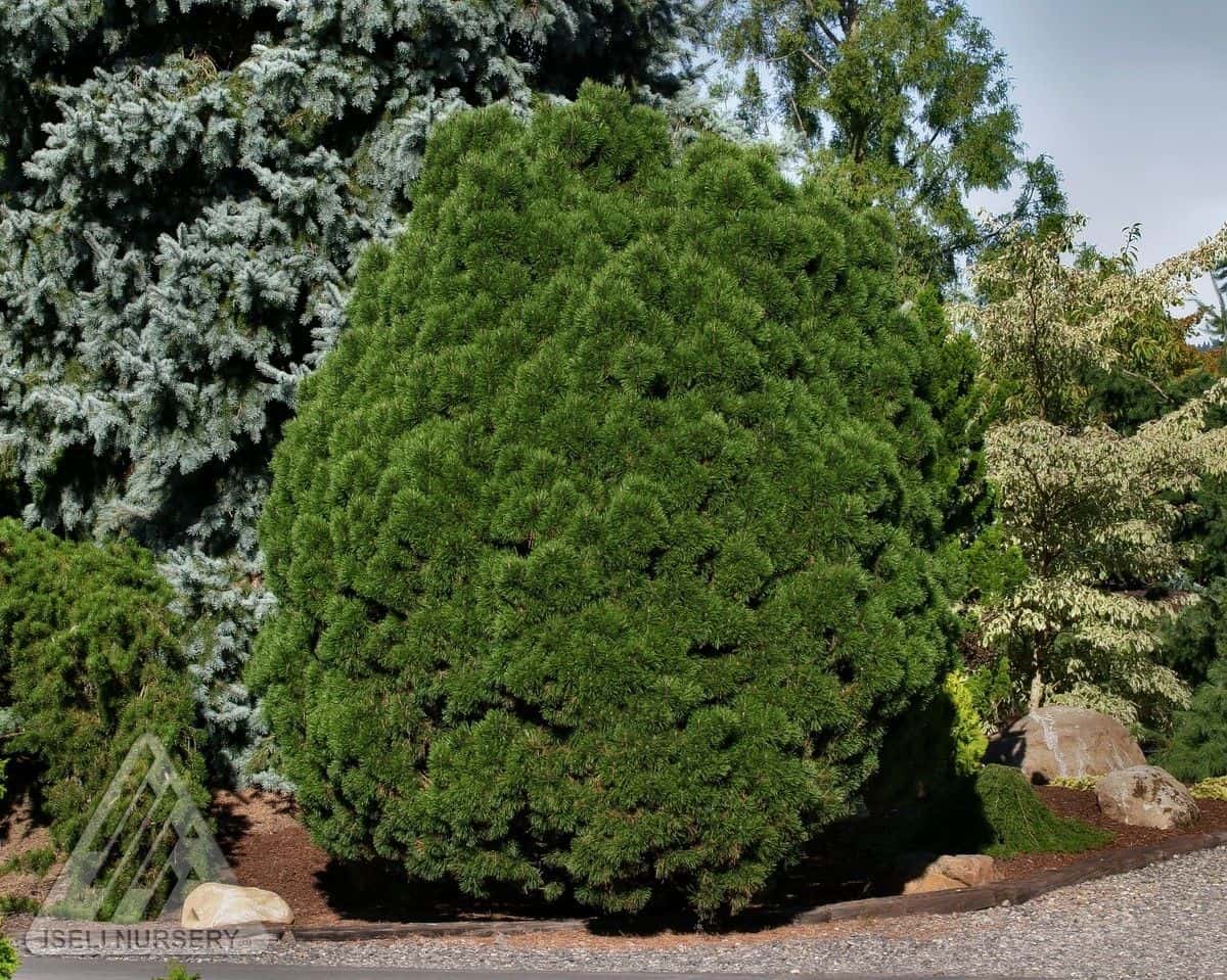 - «Офир». Уникальность этой горной сосны в том, что растение обладает конусообразной формой куста. Его высота не превышает 80 см, а диаметр одного метра в самой широкой точке. Упругая хвоя способна менять цвет в разные сезоны. Летом она насыщенная ярко-зелёная, в холодные месяцы приобретает тёмный оттенок. Предпочитает хорошо прогревающиеся солнечными лучами места.