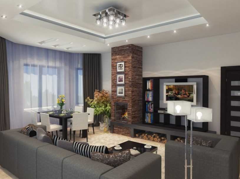 Интерьер гостиной с камином в квартире
