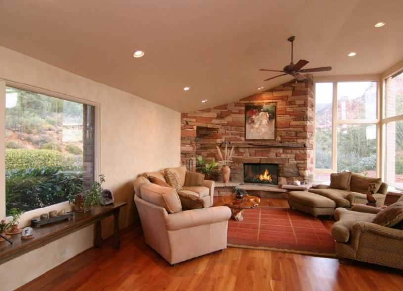 Особой популярностью пользуется угловой камин в интерьере. Он великолепно вписывается в дизайн при хорошо обдуманном его расположении.