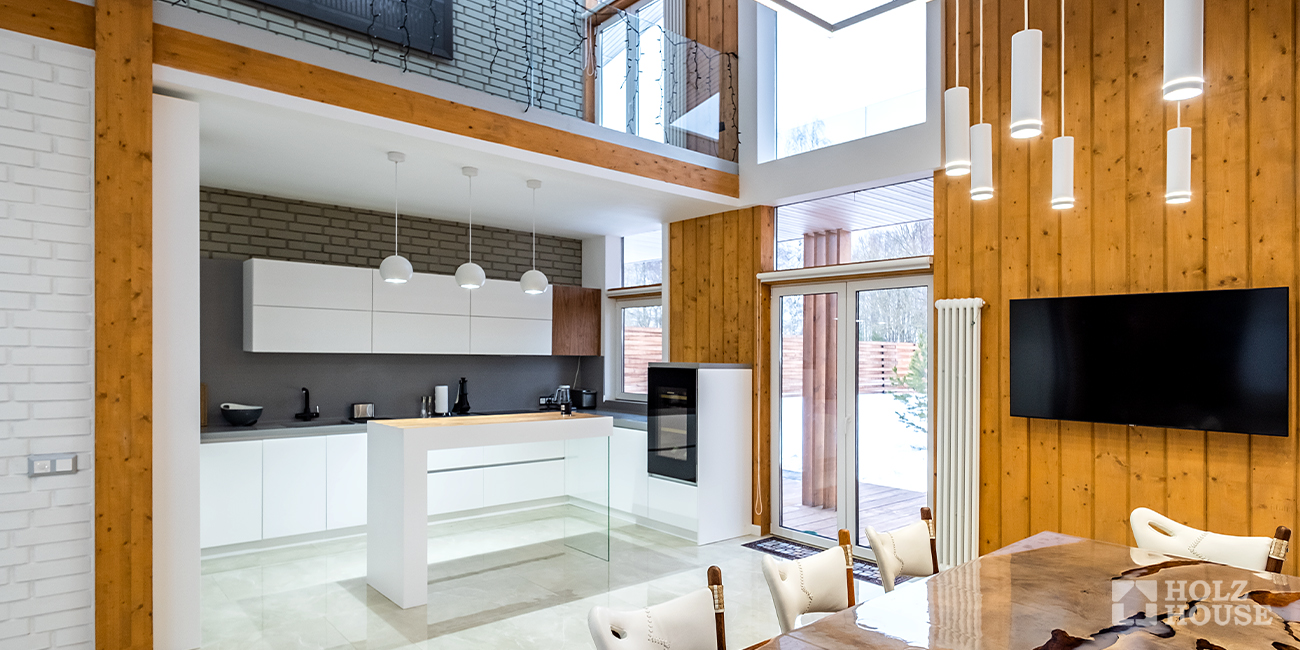 Проекты домов с двусветным помещением привлекают многих заказчиков, имея ряд неоспоримых достоинств. Но, как и любой архитектурный прием, второй свет в пространстве дома имеет свои недостатки.