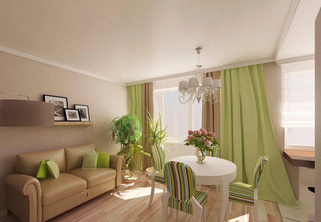 Светло-зеленый оттенок выражает жизнь, энергию и натуральность. В интерьере, этот цвет освежает мысли и настраивает на душевность. В гостиной, зеленые тона могут использоваться в предметах интерьера, отделке, мебели или светло-зеленых, уютных пледах.
