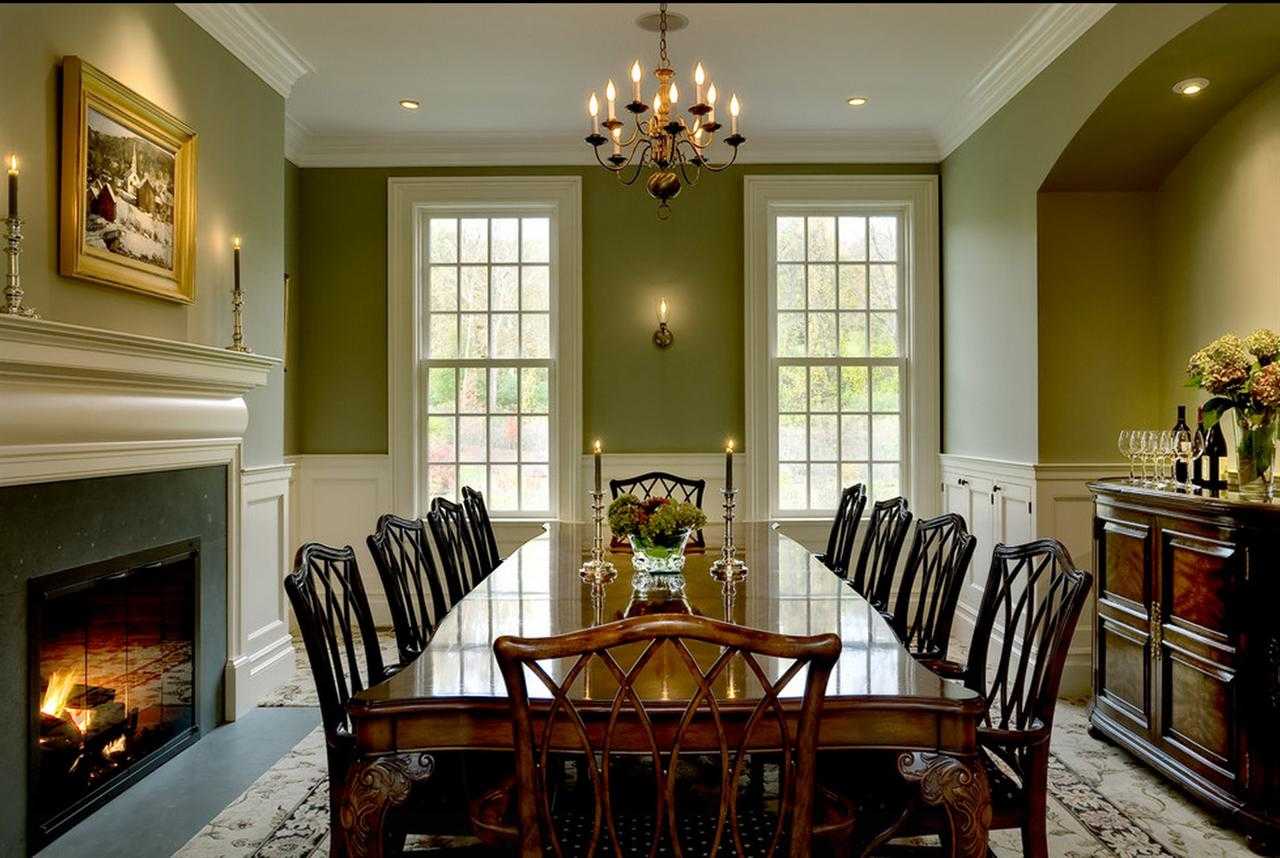 Оливковые стены в интерьере гостиной