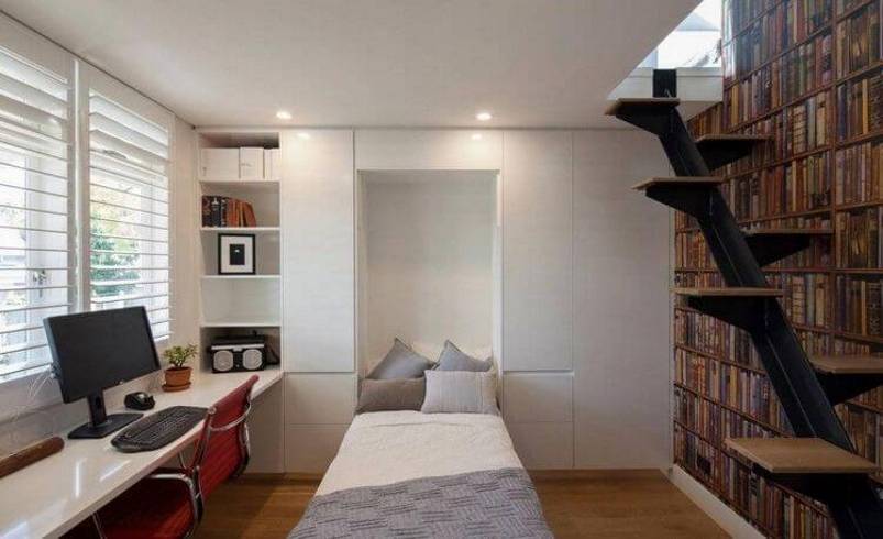 При помощи откидной кровати можно быстро из гостиной сделать спальную