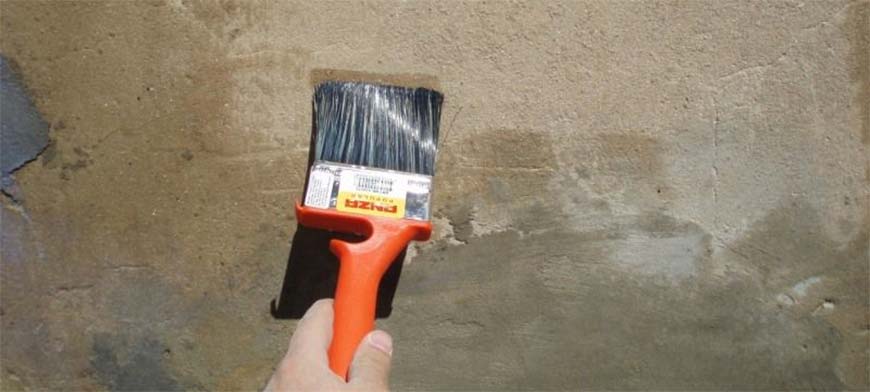 Нанесение грунта должно производиться на очищенную от наплывов раствора и пыли поверхность. Для этой цели можно применить как пульверизатор, так и валик на длинной штанге или кисть-макловицу. Если использовать валик, то выбирать лучше вариант с поролоновой или велюровой шубкой — длинный мех будет способствовать увеличению расхода состава.