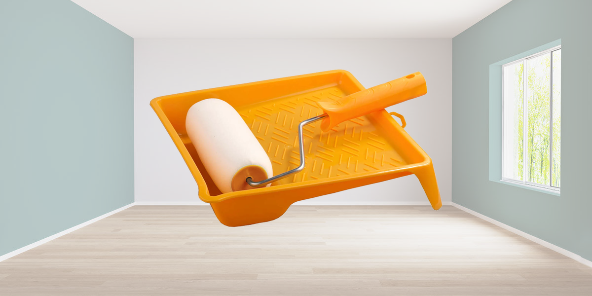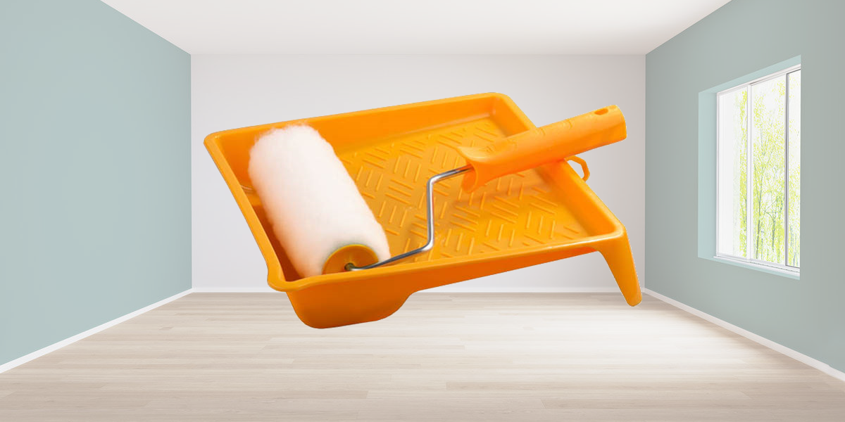 При покраске кистью или валиком применяется малярный лоток, куда необходимо налить краски столько, сколько нужно, чтобы процесс проходил удобно.