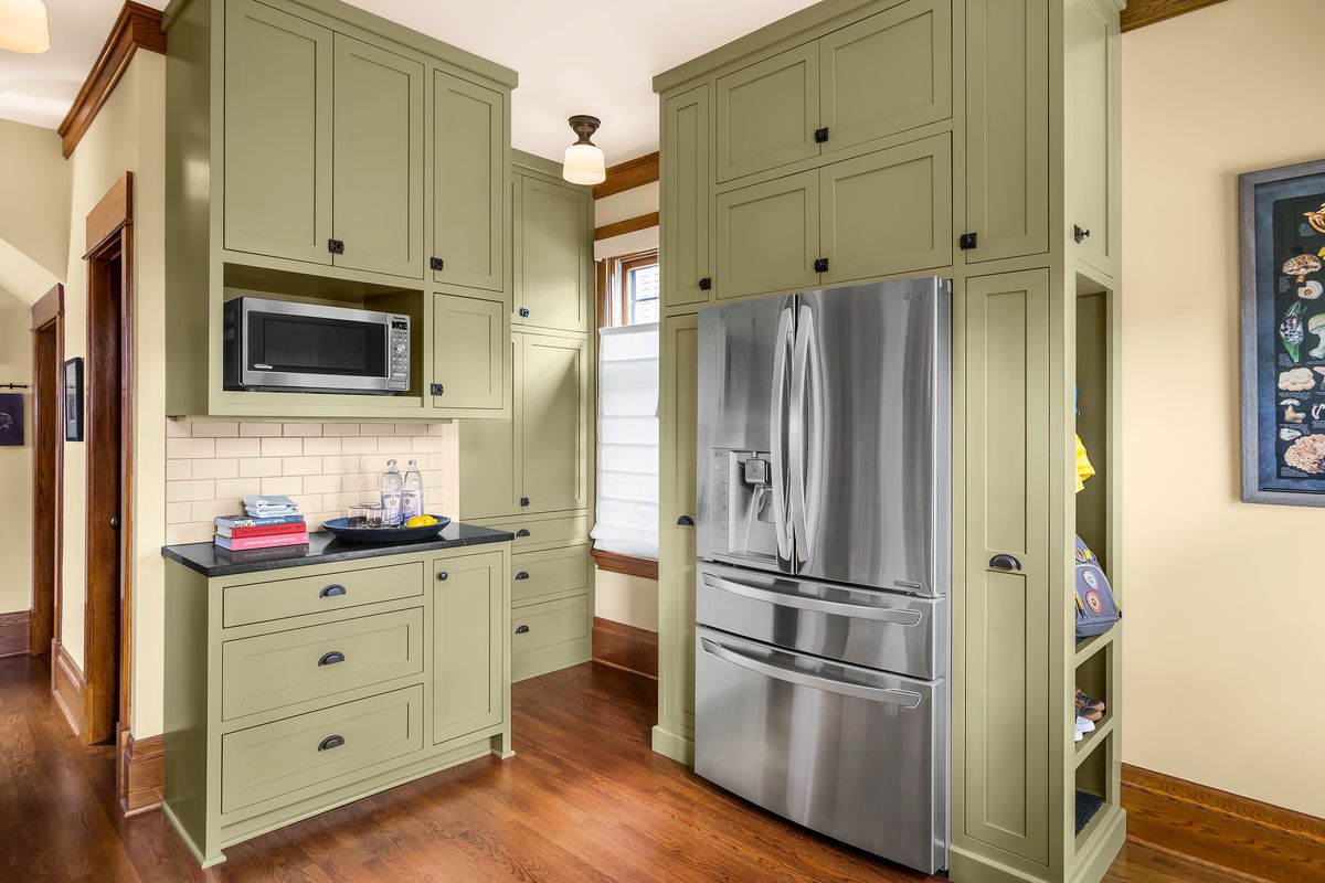 - Вы изначально запланировали скрыть холодильник от всеобщего обозрения и сделать его невидимым. Вам не хочется, чтобы агрегат кидался в глаза и выделялся на общем фоне.