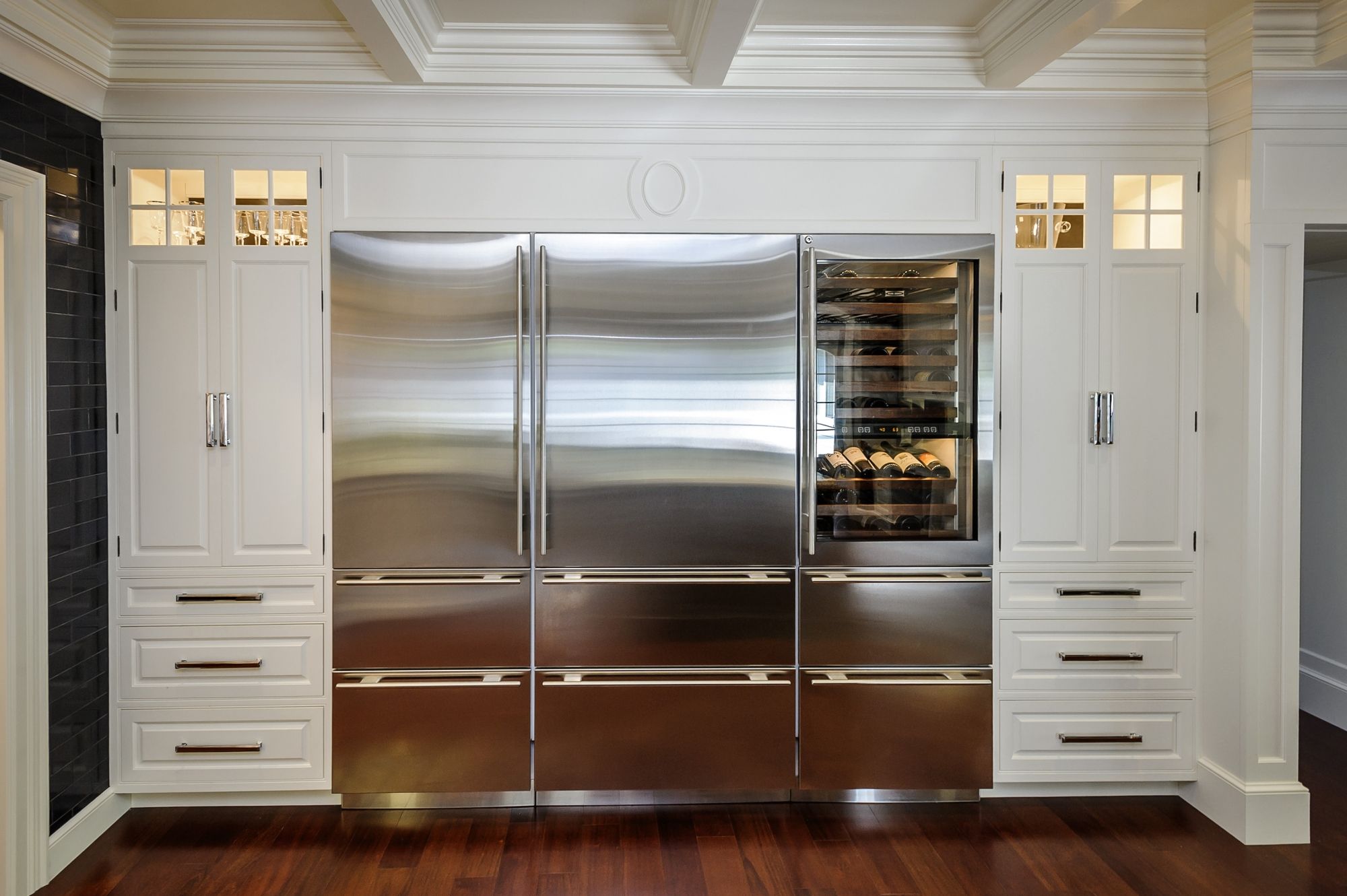 Классический интерьер с встроенным холодильником. Деревянные фасады и изысканные детали добавляют шарма и элегантности.