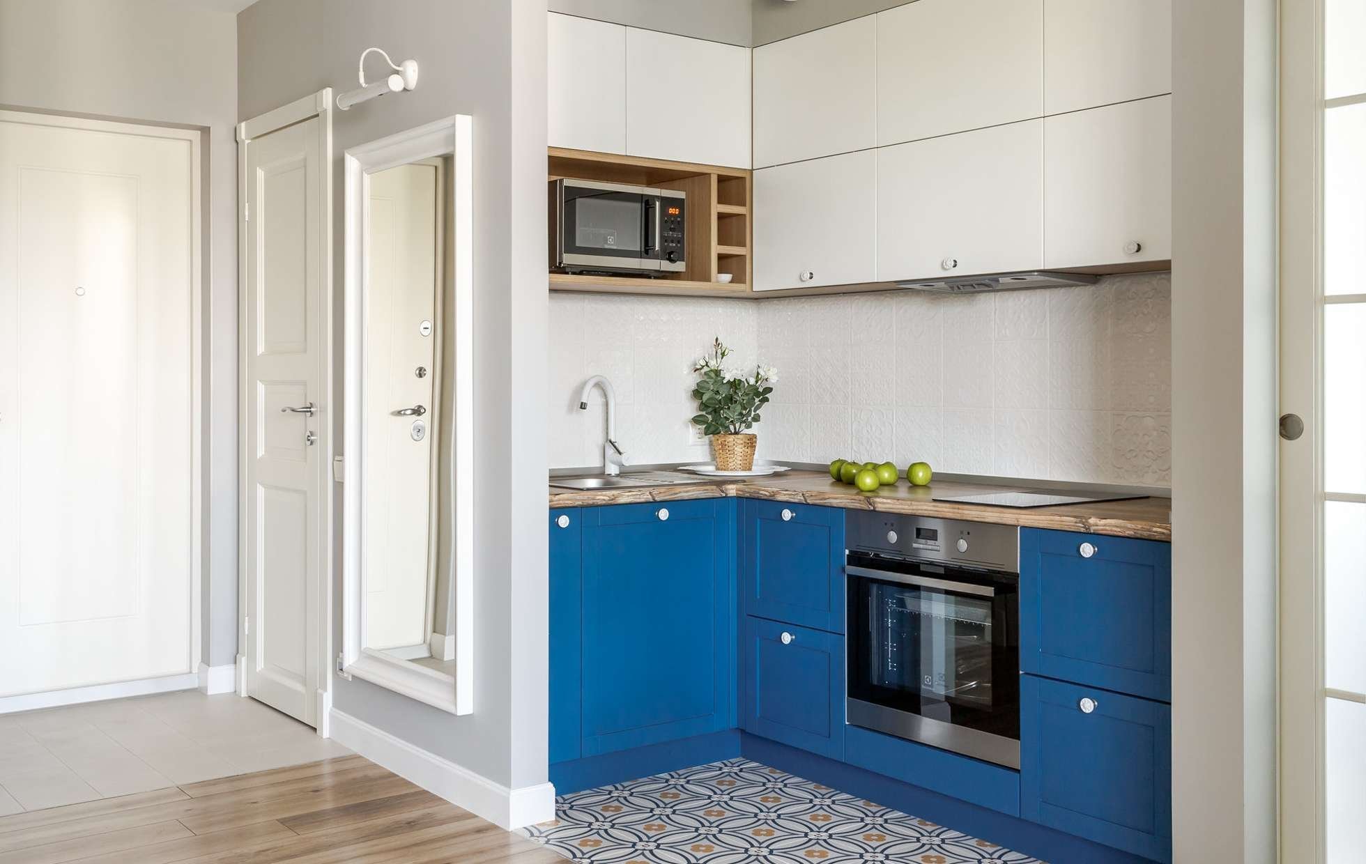 - В первую очередь стоит рассмотреть варианты со встраиваемой техникой, что в ощутимой мере поможет вам сэкономить место, а при наличии светлых тонов будет визуально делать пространство еще больше.