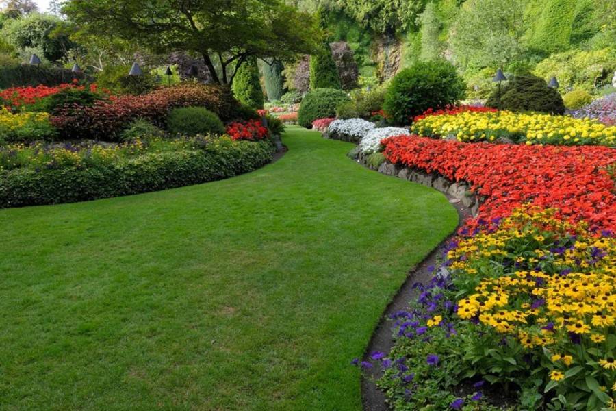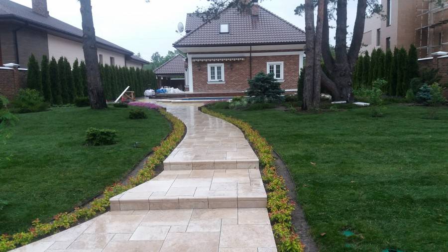 Садовые дорожки не только разделяют участок на зоны, но и придают ему аккуратный, опрятный вид. Их выполняют из камня, кирпича, дерева, бетона, булыжников, ПВХ, щебня или гальки, бутылочных пробок и даже кусочков кафеля. Для создания нетривиальной ландшафтной композиции или для оживления унылого, ровного рельефа используют ступени. Также они жизненно необходимы для упрощения подъема, если владения разместились на уклоне. Ступеньки могут быть каменными, кирпичными и деревянными. Они вносят свою лепту в эстетику пейзажа и усложняют геометрию участка. Самый распространенный вид цветников — клумбы. Растения для них нужно подбирать, исходя из особенностей климата. К примеру, в южных широтах легко приживаются нежные, чувствительные цветы, которые увянут в условиях северного климата (короткое лето, поздняя весна)