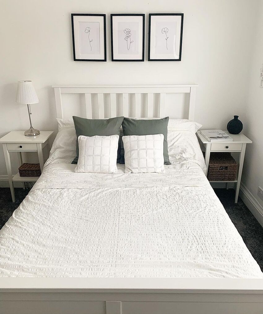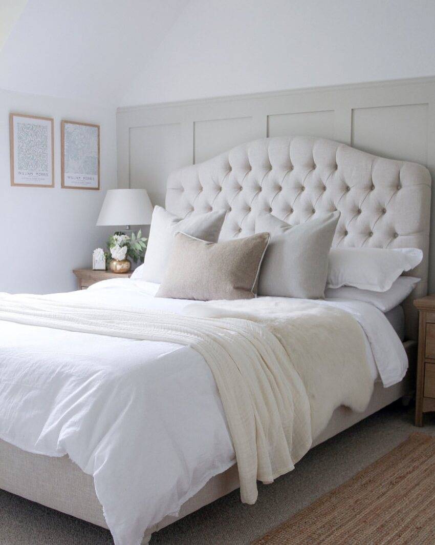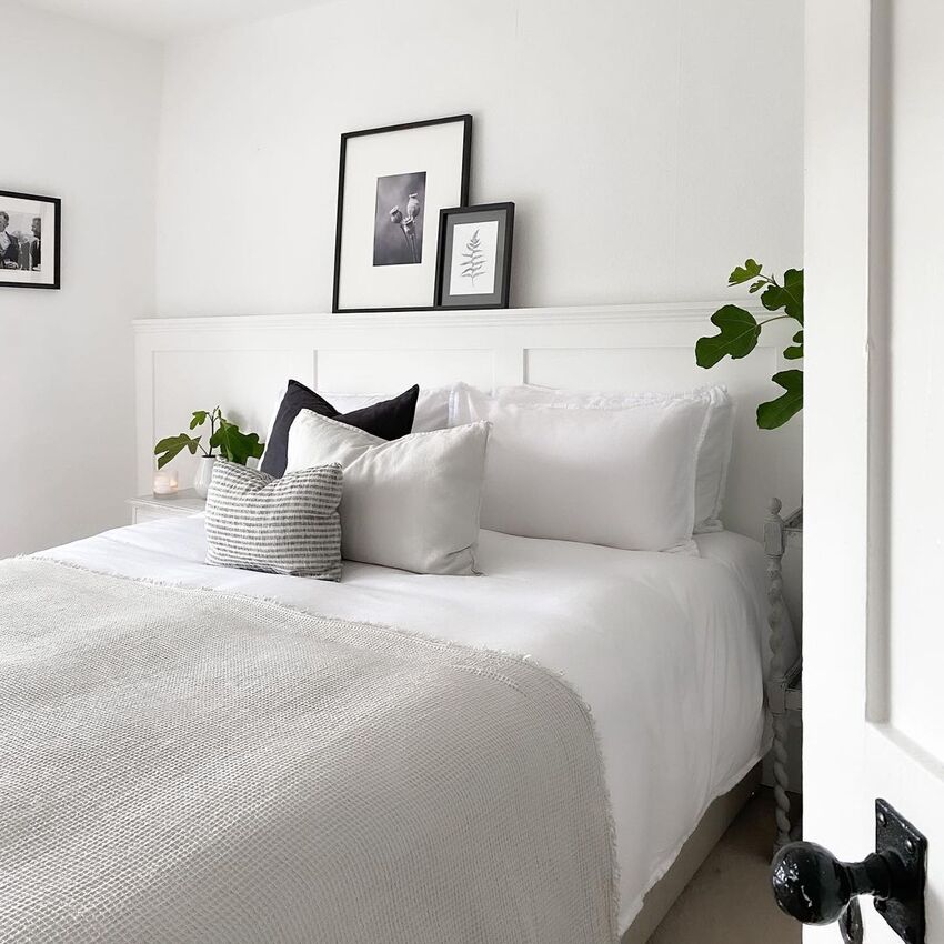 Спальня в скандинавском стиле, которая выглядит намного больше, чем есть на самом деле, благодаря белоснежной отделке.