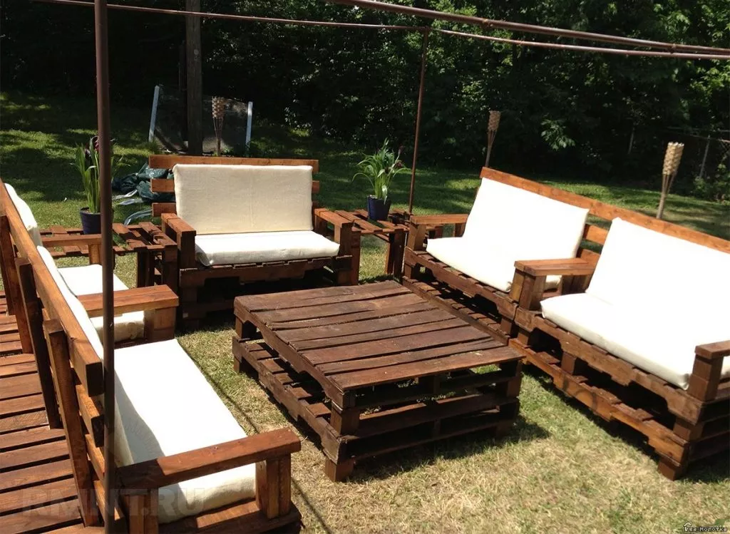 Предметы мебели из поддонов для дачи