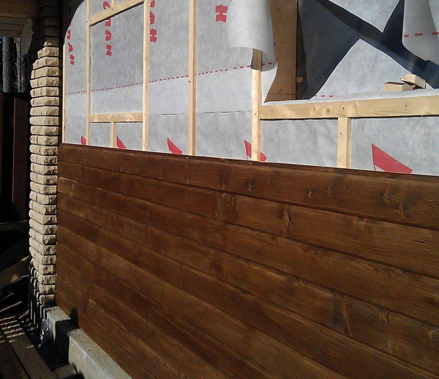 Завершающий этап облицовки – дополнительная обработка имитации бруса защитным составом от негативных воздействий природной среды.
