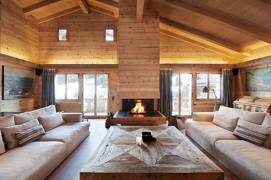 Ещё одной хорошей идеей для деревянного строительства является интерьер во французском стиле шале. Буквально это переводится как избушка пастуха, но дизайн давно уже вырос из этих скромных границ и сегодня широко используется как для оформления небольшого дома, так и шикарных горных особняков.