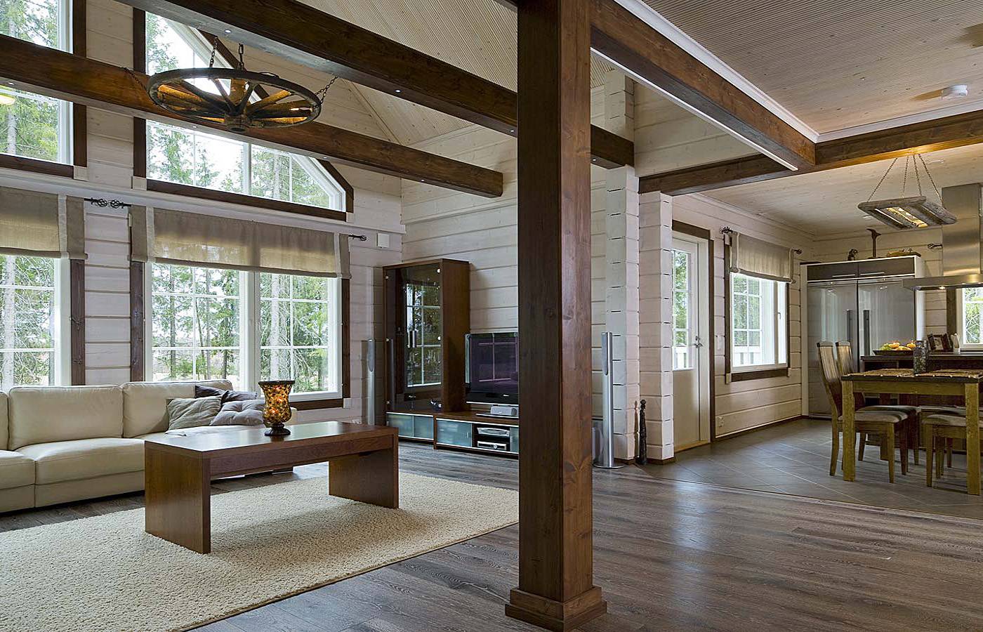 Дизайн внутреннего пространства деревянного дома фото: скандинавский стиль в интерьере.