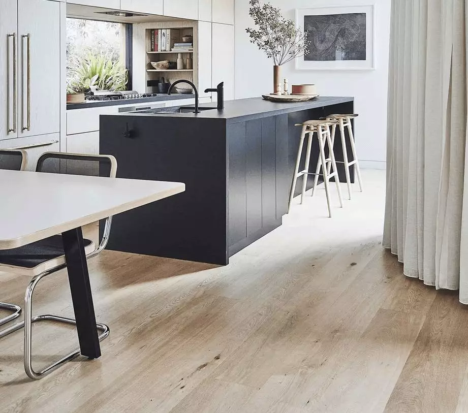 С напольным покрытием все так же очевидно: натуральное дерево или качественные материалы с такой же фактурой – единственно возможное решение. Паркет, доску или ламинат выбирают максимально естественных и теплых золотистых оттенков, хотя используют и светлые прохладные тона.