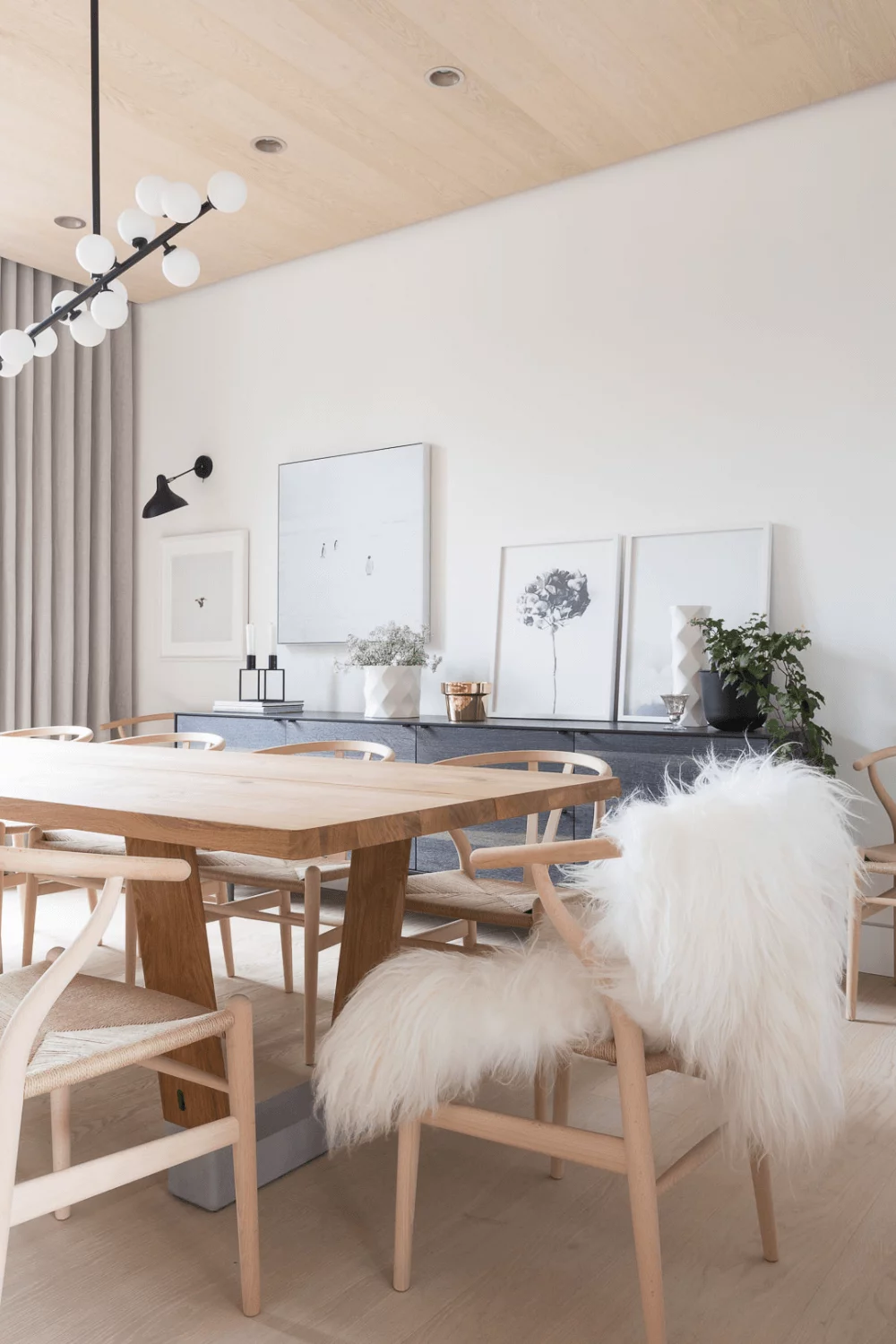 Скандинавы любят бывать на природе, бережно и уважительно к ней относятся, ценят все натуральное, осознавая ответственность за использование природных ресурсов. В скандинавском дизайне интерьера преобладает дерево — это деревянная мебель, предметы декора, паркет на полу, деревянные панели на потолке. Кроме того, в домах очень много живой зелени от растущих декоративных деревьев.