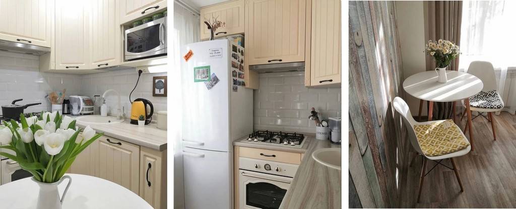 Для небольшой кухни подходит легкий декор, светлые стены, отсутствие лишних деталей и практичная мебель