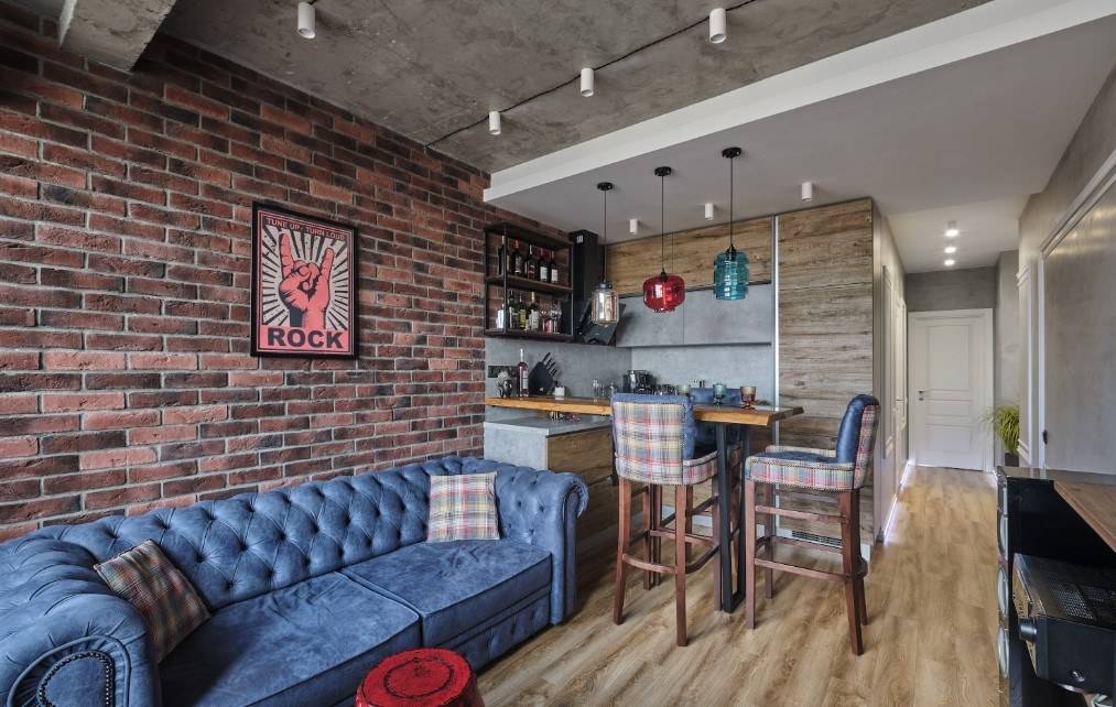 Такое необычное название интерьера полностью соответствует его внешнему виду. Элементы кирпичной кладки на стенах, металлические светильники и чёрно-белые фотоснимки – лишь часть характерных для лофта деталей. Также следует заменить обычные шкафа на открытые полки, ведь чем больше свободного пространства в этом случае, тем лучше.