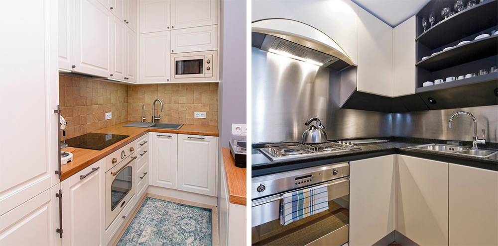 Все это безнадежно устарело, – считает Юрий. – Над рабочей поверхностью лучше использовать либо плитку нейтрального цвета без узорчиков и цветочков, либо тот же материал, который использовали на столешнице. В крайнем случае – прозрачное стекло, за которым стена выкрашивается в нужный цвет. Главное – откажитесь от принтов и картинок, на кухне они ни к чему.
