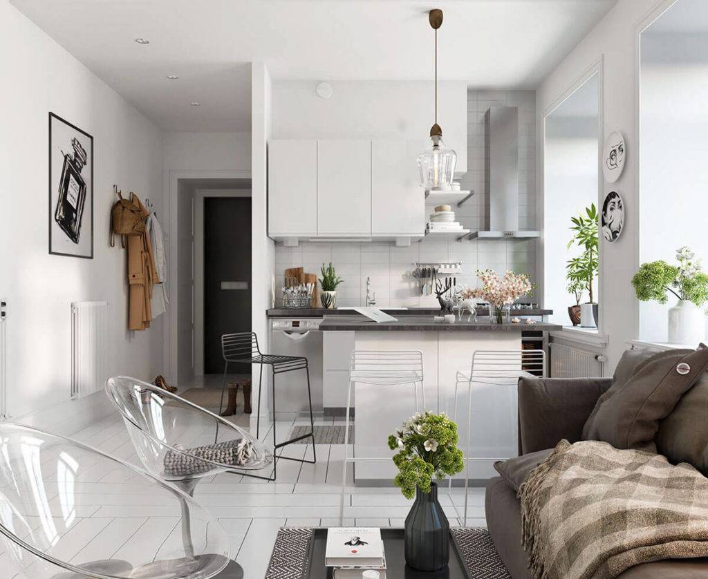 Скандинавский стиль в интерьере кухни гостиной, фото