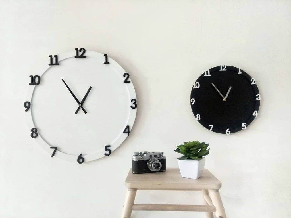 Часы в минималистичном дизайне на стене – традиционный элемент декора. Излюбленный приём – повесить что-либо на прищепках: записки с напоминаниями, красивые открытки и пр.