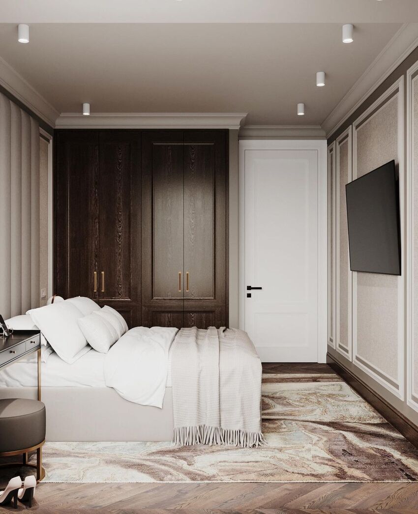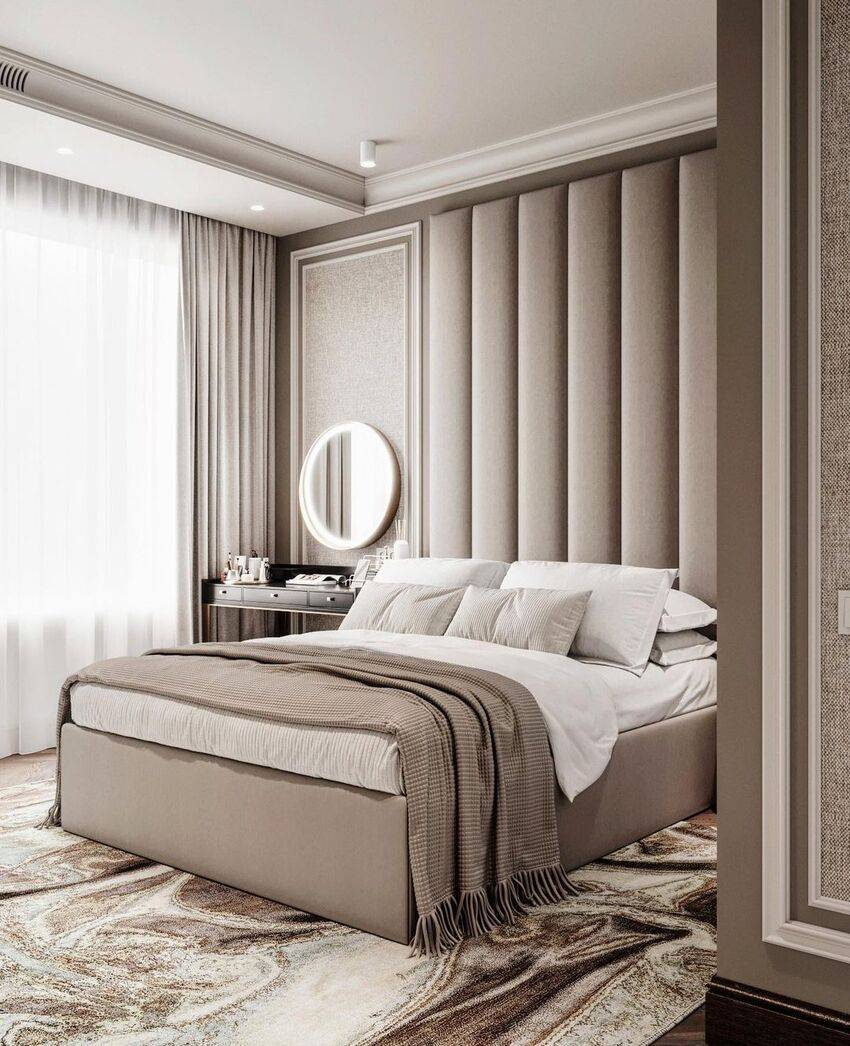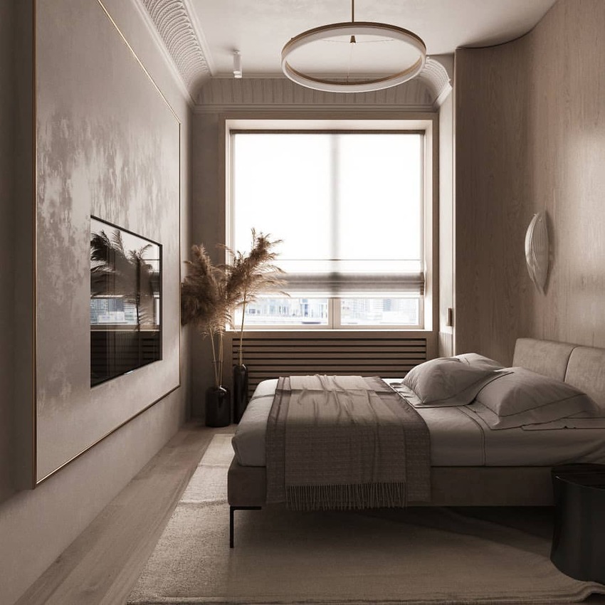 Спальня бежевая с темной гаммойИсточник арт-интерьер.москва