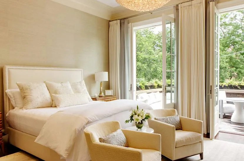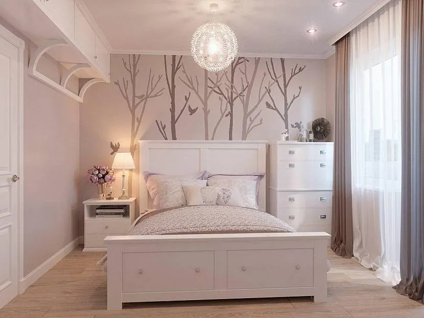 Дизайн спальни в светлых тонах строится не только на меблировке, но и на украшениях. Элементы декора рекомендуют подбирать в зависимости от стиля помещения: