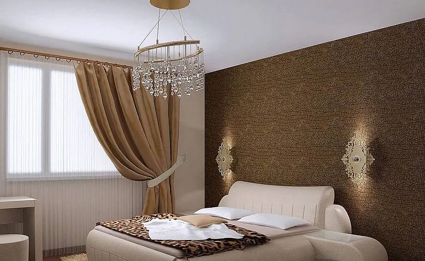 Например, отделка беж, шторы и покрывала – яркие или шоколадных тонов, но лучше текстиль подобрать в тон стен, для изюминки, с узором. Большие спальни можно смело декорировать контрастным текстилем.