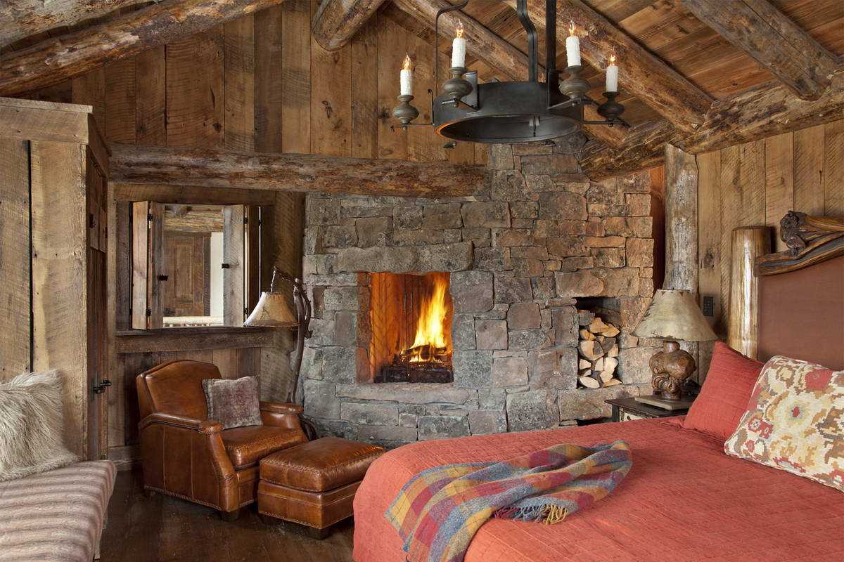 Именно на этой мебели акцентируется внимание. Диван должен быть практичным и функциональным, то есть трансформирующимся в большую кровать. Камин в охотничьем домике должен быть обязательно и, желательно, настоящим